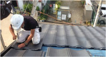 カバー工法のメリットは、葺き替えに比べ工事期間が短く、費用が抑えられる点です。また、既存の屋根を解体しないので廃材が出ず、環境にやさしい方法と言えます。さ らに屋根材が二重になるので、断熱性、遮音性も高まります。リフォーム工事の手順は、既存屋根の上に防水シートを張り、屋根材の下に並べる垂木(たるき)を一定間隔で釘止めした後、新しい屋根材を設置します。