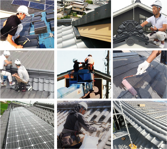 まるかさでは、屋根工事はもちろんのこと、太陽光発電から外壁塗装までお家に関わる全ての施工をノンストッ プの一括対応でお引き受けしております。万が一のトラブルには迅速に対応。保証も充実させています。また、ご要望により定期的な点検も実施。快適なお住まいをお守りするため、そしてお客様の安心のために、職人一同、毎日の仕事に取り組んでいます。
