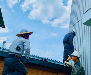 小さな倉庫の屋根をリフォーム中?笑