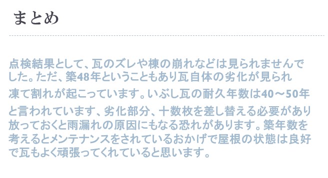 社長が調査報告を書いたのですが、「瓦もよく頑張ってくれていると思います」