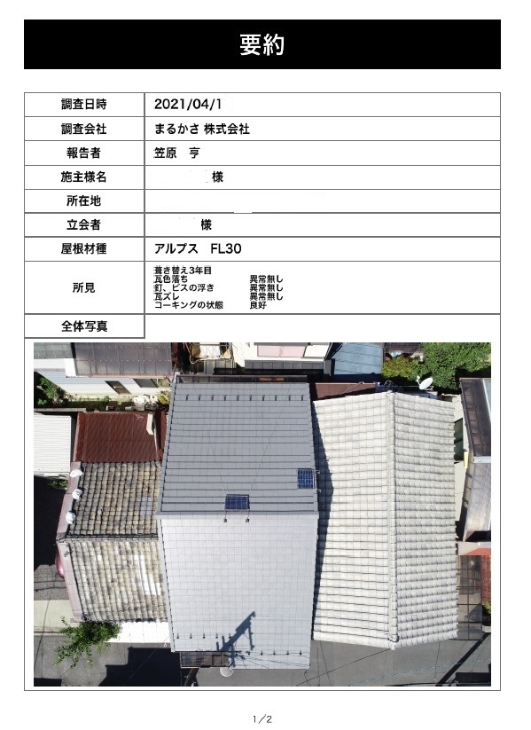 屋根全体が見渡せて、報告書も乱雑になる事無く、とてもわかりやすい!