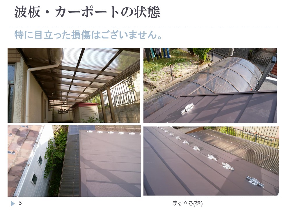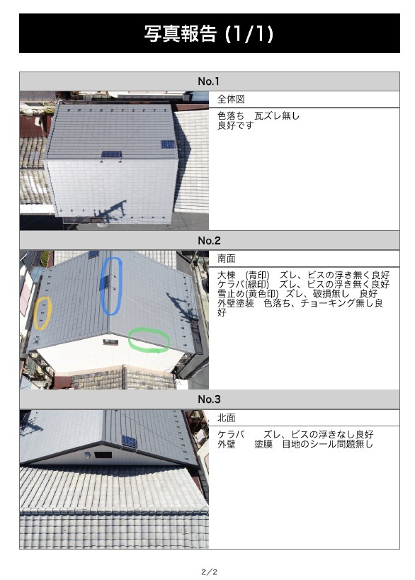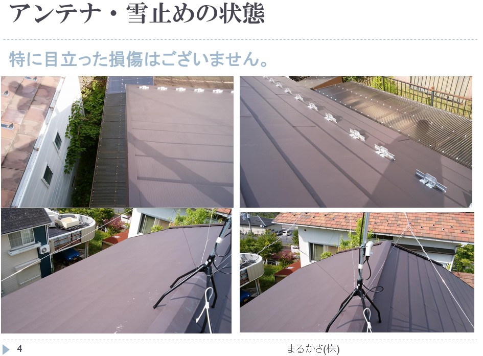 屋根全体を撮影するのは難しく、部分部分を数枚とって報告していました。