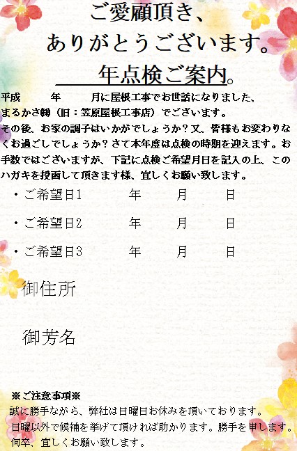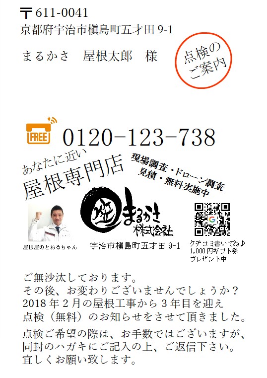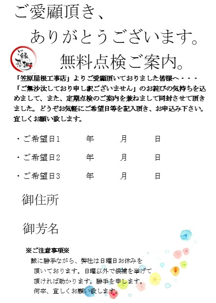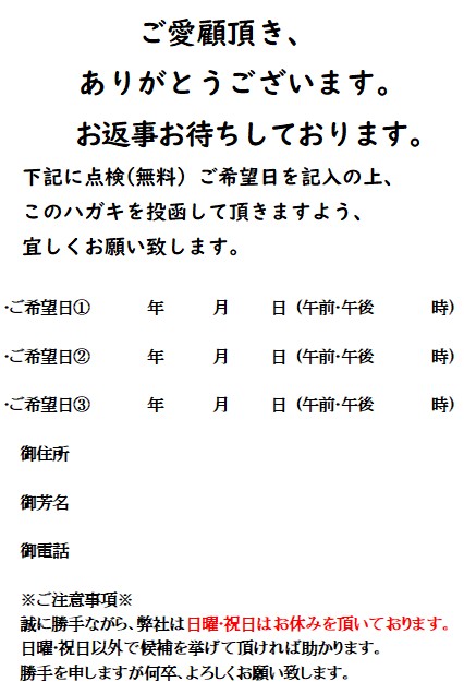 点検ハガキの返信率が上がります(笑)
