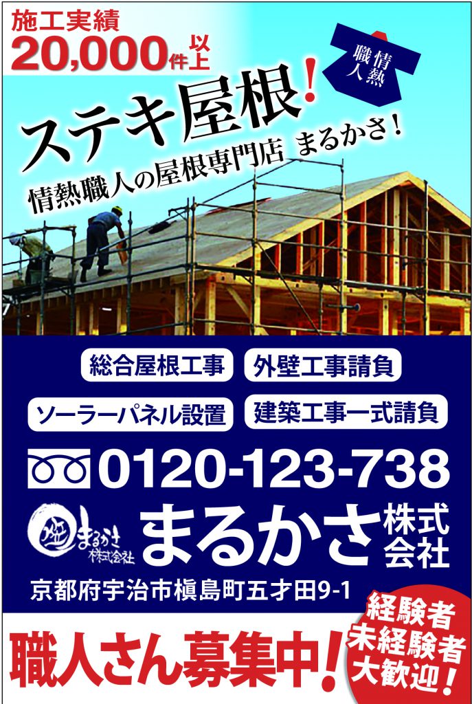 職人さん募集“~京都・宇治・城陽~瓦・屋根・雨漏り修理・梅雨・地震・台風 ”