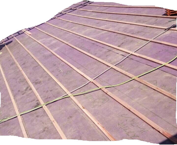 コンパネを貼り→防水下地ゴムアスルーフィングを敷き詰め、桟木をうち