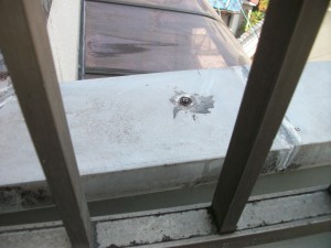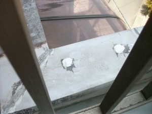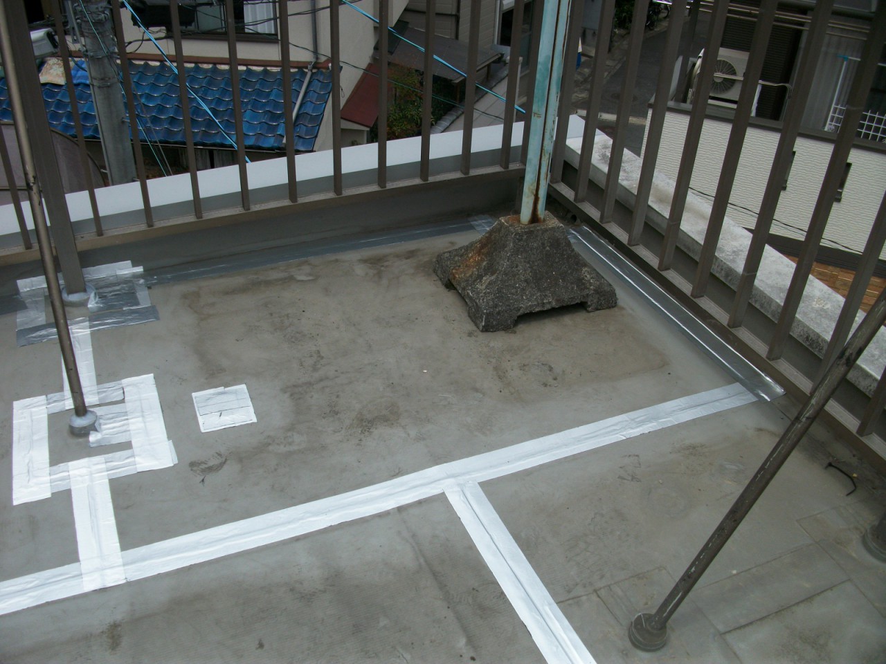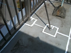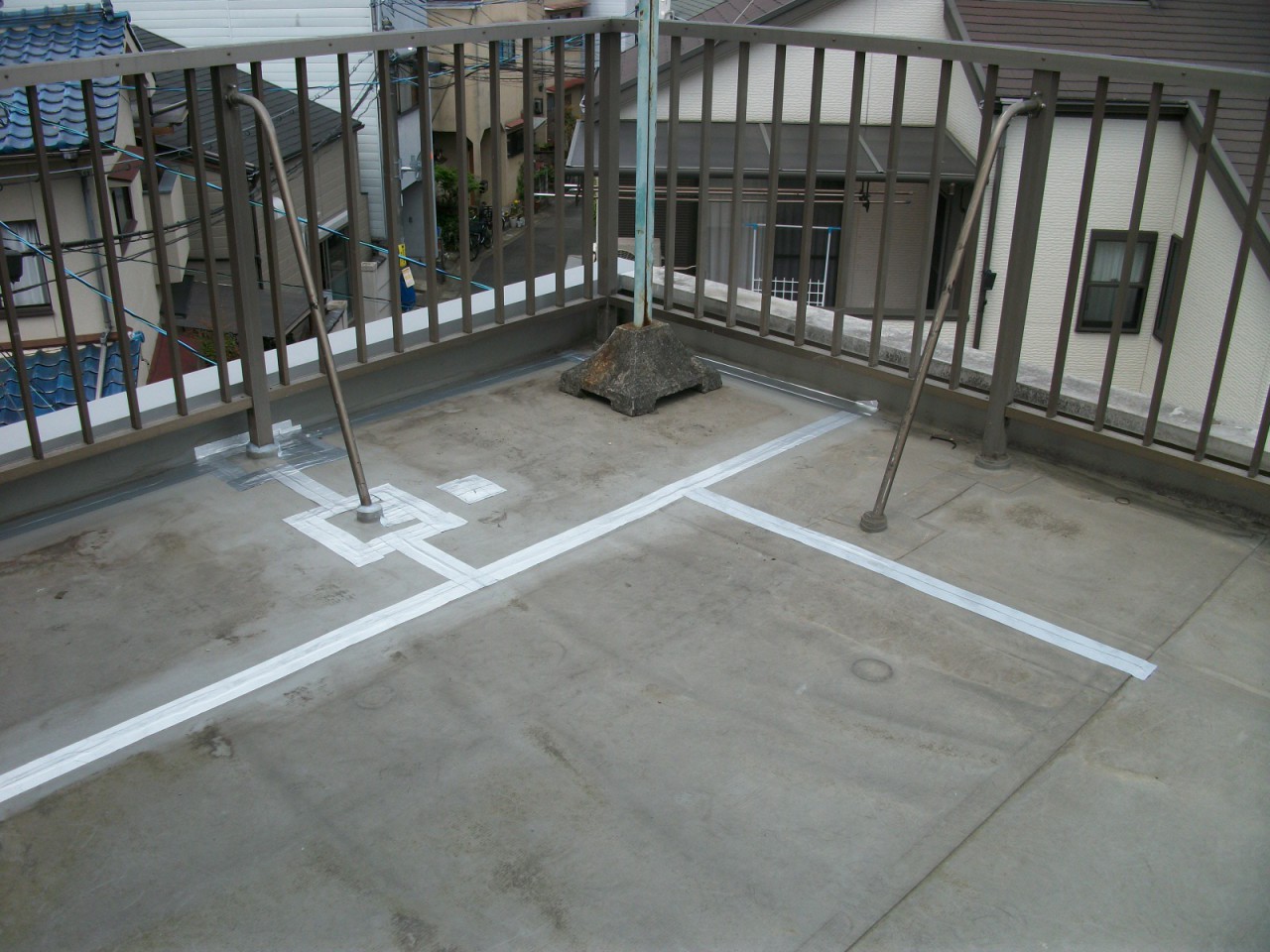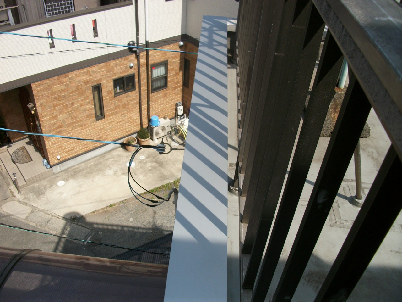 問題は一部の笠木(ベランダの手すりみたいなところ)と、一部のシート防水の重なり部分です。