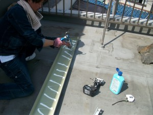 仕上げに、防水テープ(表面がアルミ素材になっているもの)を貼り付けます。