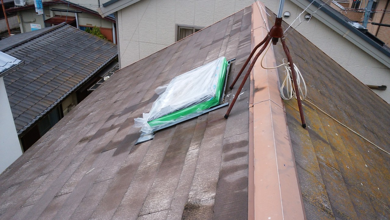 「京都府相楽郡精華町」にて「雨漏り修理工事」「トップライトからの雨漏り」を「応急処置」にてひとまず解決!!この状態で工事日を待ってもらいます。