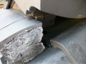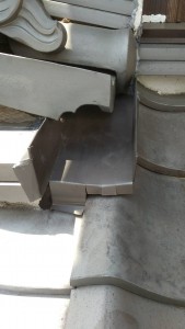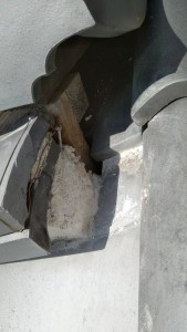 既存瓦の破風板を巻いている、のし瓦を切除します。