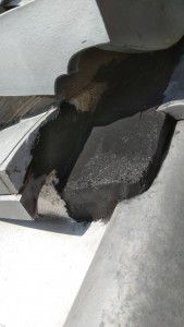 この下部の瓦をめくってみると、雨漏り跡がありました。