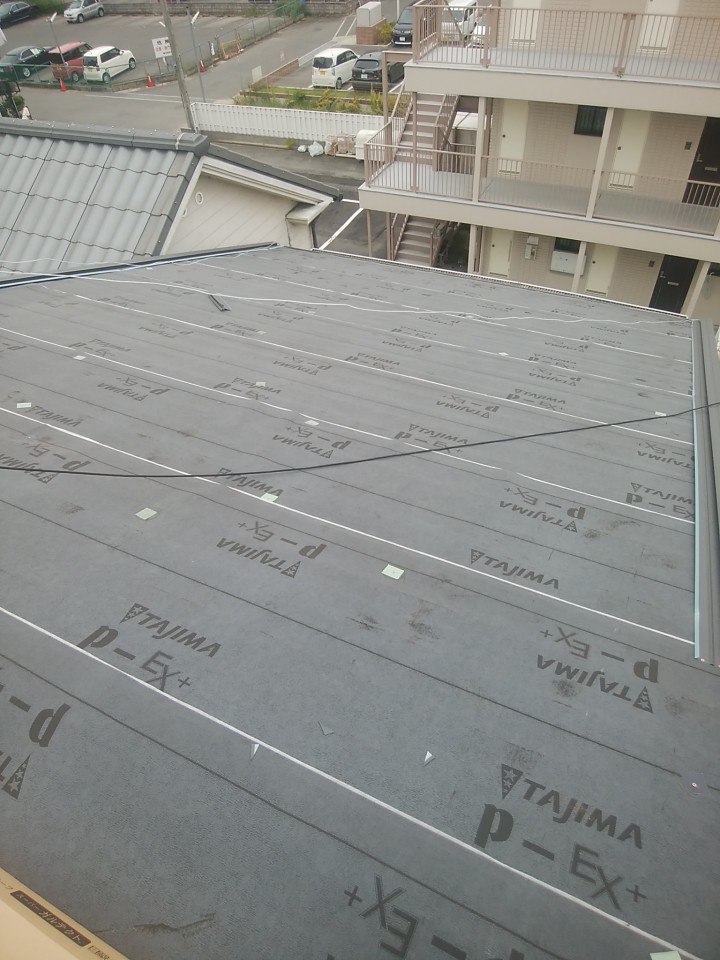 それでは、二次防水として、ゴムアスルーフィングを貼ります。