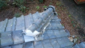 漏水が進行し、屋根から瓦が崩れ落ちておりました。