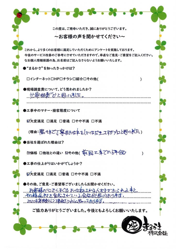 隅々まで丁寧なお仕事をしていただきさすがプロと思いました。